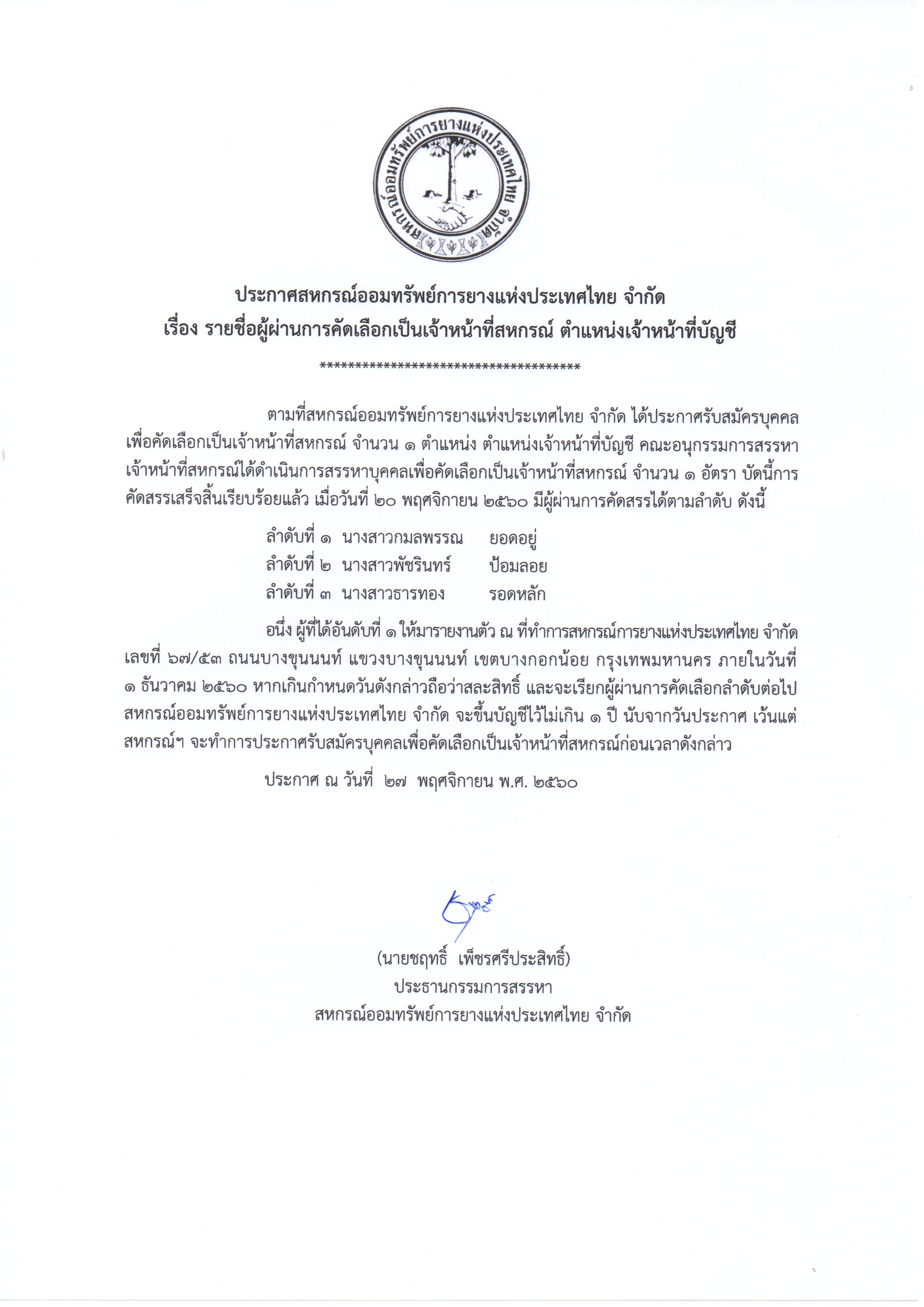 THE RUBBER AUTHORITY OF THAILAND SAVING AND CREDIT COOPERATIVE, LIMITED